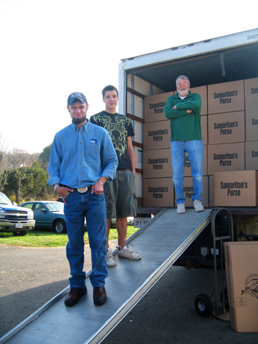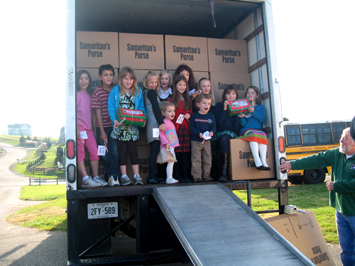 One of the highlights of the year for us is participating as an official Relay Collection Center for Operation Christmas Child! We are happy to report that during the 2009 Collection Week we received 3,786 gift-filled shoeboxes that we transferred to Alexandria to be shipped to the Samaritan’s Purse processing center in Charlotte, NC!! Thank you to everyone who sent in a shoebox and to all the volunteers who helped here.