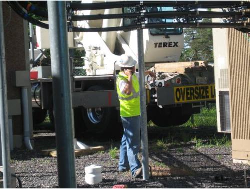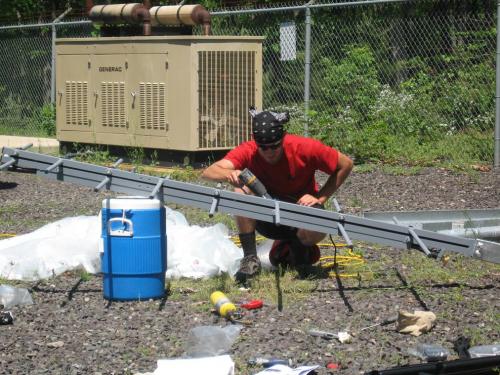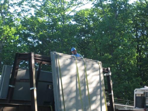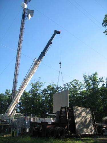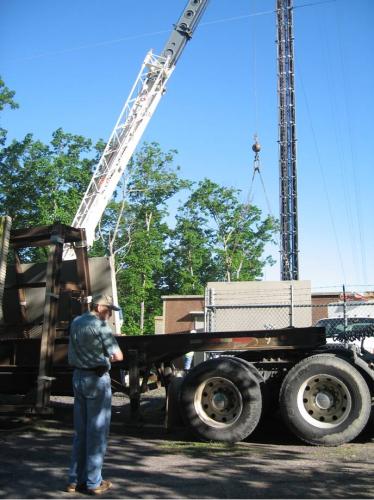 Today the antenna and the cable arrived. The day was spent assembling the antenna and making sure all the proper pieces were in place. A surveyor was also present to make sure the antennas were pointing in the right direction.