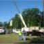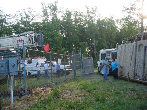 Today was a huge day for WPRZ FM! The actual physical construction of the station began!! Today Smith-Midland brought the concrete building up to the tower site in 6 pieces on a truck that had to be helped up the steep road by a bulldozer! Why? The concrete building weighed 25,000 pounds! The building had to be constructed of concrete because of ice that may fall from the 300 foot tower in the winter months. Anything other than concrete wouldn’t hold up under those circumstances. Each of the pieces was carefully lifted off the truck by a big crane and carefully placed into position. It was quite a sight to see. Mark and his crew did a fantastic job!!!