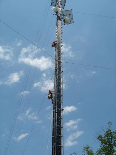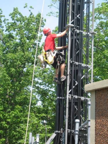 On Thursday and Friday, the antennas and cable were installed. This was a major accomplishment! It took two guys most of Thursday to get the antennas up and installed in the proper positions and then on Friday, the cable was installed up the tower to the antennas.